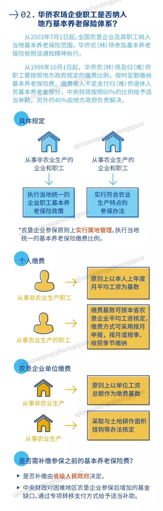 目前,全國共有華僑農(nóng)場(chǎng)84個(gè),土地面積480萬畝,現(xiàn)有總?cè)丝?0萬人。那么,華僑農(nóng)場(chǎng)職工養(yǎng)老有哪些政策規(guī)定?今天的政策解讀,小僑和你聊一聊。(來源:中國僑網(wǎng)官方微信,制圖:楊維思,編輯:冉文娟,ID:qiaowangzhongguo)