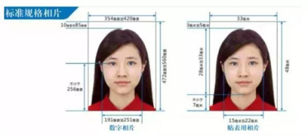 規(guī)格:數字相片規(guī)格不低于354(寬)×472(高)像素,不大于420(寬)×560(高)像素,貼表用相片規(guī)格為寬33㎜,高48㎜。