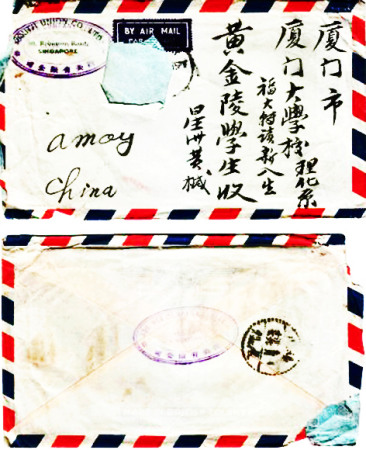 那是1945年10月間,也就是歷經(jīng)14年抗日戰(zhàn)爭(zhēng)取得勝利后,黃金陵全家在忍饑挨餓地熬過(guò)了極其艱難的崢嶸歲月之后,迫切地期待著遠(yuǎn)在南洋父親的音信呀!前村后里、左鄰右舍都有不少人接到從海外傳來(lái)的報(bào)平安信,唯獨(dú)他家遲遲沒有接到。1945年10月11日,正當(dāng)全家大小焦急萬(wàn)分之時(shí),終于接到他父親從新加坡寄回來(lái)的第一封僑信。
