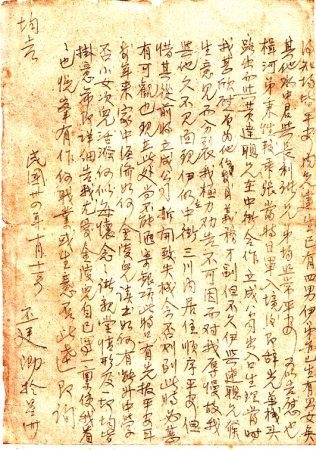 “金陵兒知悉:近日接爾由泉城4月10日復(fù)來(lái)回文,所稟已悉。爾讀書無(wú)甚進(jìn)步,文法字眼、筆劃尚多錯(cuò)用。而在此青年時(shí)代不守儉樸,竟好浮華,乃敢請(qǐng)求購(gòu)買夜光手表。此物爾有何用,將以炫耀富貴乎?抑或獵艷乎?年未大而先存奢侈心性。不知稼穡之困難,不知爾父之辛苦。余畢生海內(nèi)外奔走,不惟衣冠未嘗求美,并粗衣微粥,隨便草草。爾今在童稚之年,豐衣足食,家庭無(wú)饑寒之慮,實(shí)宜努力以求學(xué)問(wèn),為來(lái)日任重道遠(yuǎn)之計(jì)。煅煉骨格,作忍辱負(fù)重之人材。須知每個(gè)人必克苦耐勞,方能振作有為……推而思之,學(xué)生之在學(xué)校亦然,一校學(xué)生貧富環(huán)境各異,切莫羨富貴人家,效紈褲子弟,一味追求浮躁,則何能用心于學(xué)業(yè)哉……