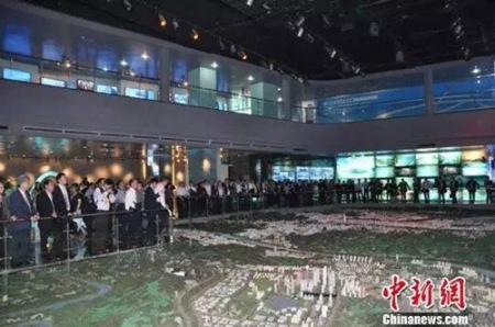 第六屆世界華僑華人社團(tuán)聯(lián)誼大會代表參觀柳州城市規(guī)劃館。