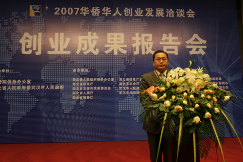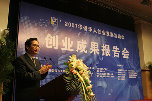 中國僑網(wǎng)消息(記者 王海波):6月24日上午,由國務(wù)院僑務(wù)辦公室、湖北省人民政府暨武漢市人民政府共同主辦的“ 2007華僑華人創(chuàng)業(yè)發(fā)展洽談會”創(chuàng)業(yè)成果報告會在武漢科技會展中心舉行。湖北省副省長郭生練、國務(wù)院僑辦經(jīng)濟科技司司長譚天星等領(lǐng)導(dǎo)出席報告會。