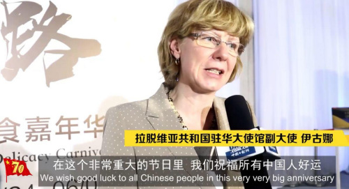 拉脫維亞共和國(guó)駐華大使館副大使祝福所有中國(guó)人在這么重大的節(jié)日中好運(yùn)。她表示,今年是拉脫維亞與中國(guó)建交27周年,感謝中國(guó)一直以來(lái)對(duì)拉脫維亞的支持。她不知道用中文怎么說(shuō)生日快樂(lè),但是她想說(shuō):“我愛(ài)你,中國(guó)!”