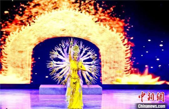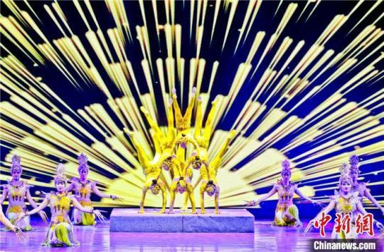 圖為甘肅演藝集團(tuán)敦煌藝術(shù)團(tuán)(省雜技團(tuán))的演員們表演《千手觀音·女子柔術(shù)》。該劇將軟功技巧和敦煌舞姿完美結(jié)合,帶來了一場美輪美奐的視聽盛宴?!⊥鯇ⅰz