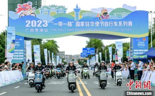 9月10日,2023“一帶一路”國家駐華使節(jié)自行車系列賽廣西貴港站1開賽,來自老撾、柬埔寨、新加坡、印度尼西亞、澳大利亞、巴基斯坦、英國等國家駐華使節(jié)、留學生代表及自行車運動愛好者等500余名選手展開角逐。