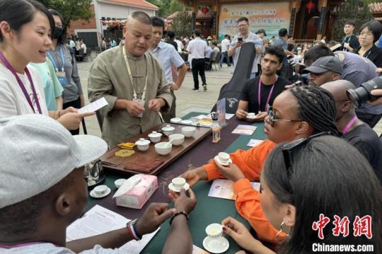 14日,“一帶一路”樂隊(duì)成員在泉州市安溪縣體驗(yàn)“斗茶”活動(dòng)?!】聦?攝