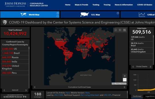 參與互動(dòng)中新網(wǎng)6月30日電 綜合報(bào)道,美國(guó)約翰斯·霍普金斯大學(xué)實(shí)時(shí)統(tǒng)計(jì)數(shù)據(jù)顯示,截至北京時(shí)間6月30日21時(shí)33分許,全球新冠確診病例已超1042萬(wàn),累計(jì)死亡超50.9萬(wàn)。新冠疫情持續(xù)蔓延數(shù)月,數(shù)據(jù)顯示美國(guó)近一半人處于無(wú)業(yè)狀態(tài),日本失業(yè)率大增,許多國(guó)家經(jīng)濟(jì)活動(dòng)陷入停滯。另一方面,多國(guó)旅游業(yè)7月起逐漸重啟,應(yīng)對(duì)疫情“新常態(tài)”的挑戰(zhàn)。