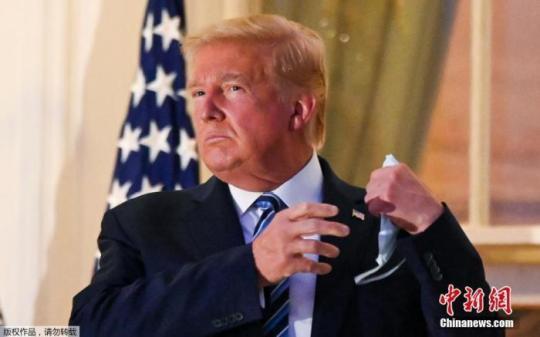 當(dāng)?shù)貢r間10月5日,美國總統(tǒng)特朗普離開位于馬里蘭州的國家軍事醫(yī)療中心返回華盛頓,抵達(dá)白宮時摘下口罩。