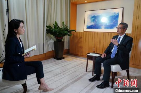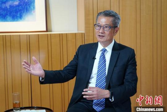 香港特區(qū)政府財(cái)政司司長陳茂波接受中新社“中國焦點(diǎn)面對面”專訪。中新社記者 張煒 攝