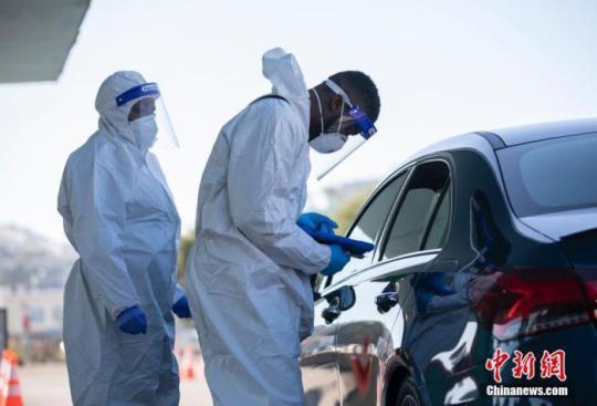 當(dāng)?shù)貢r(shí)間12月1日,設(shè)立在美國加州舊金山Alemany農(nóng)貿(mào)市場的“得來速”式新冠病毒檢測站向市民提供檢測服務(wù)。中新社記者 劉關(guān)關(guān) 攝