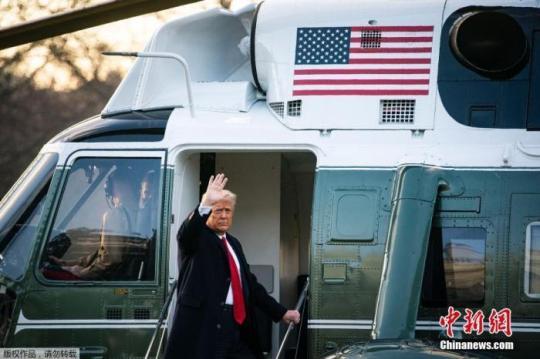 當(dāng)?shù)貢r(shí)間2021年1月20日,美國華盛頓,特朗普登上“海軍陸戰(zhàn)隊(duì)一號(hào)”總統(tǒng)專用直升機(jī)。