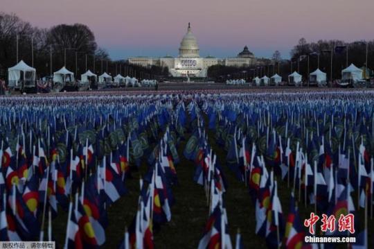 當(dāng)?shù)貢r(shí)間1月19日,美國首都華盛頓,第46任美國總統(tǒng)就職儀式已經(jīng)準(zhǔn)備就緒。圖為華盛頓國家廣場(chǎng)上插滿了旗幟。