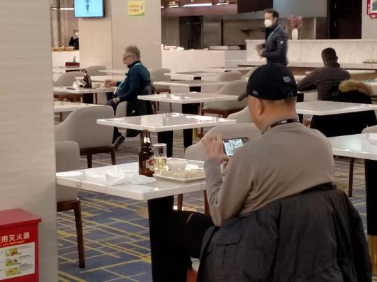 走進(jìn)延慶賽區(qū)新華家園媒體酒店的餐廳,不少記者正享用著美食,不時(shí)談笑風(fēng)生。在過道旁的一個(gè)餐桌上擺著水餃和啤酒,一位國外記者拿起手機(jī)拍下了自己的這頓豐盛晚餐。看得出他很享受面前的這個(gè)熱氣騰騰的中國美食。