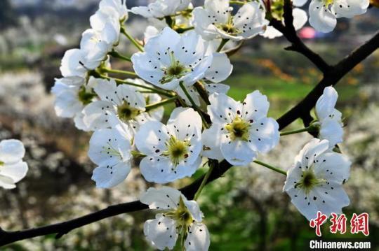 資料圖:鳥兒在梨樹枝頭停留。劉峰 攝