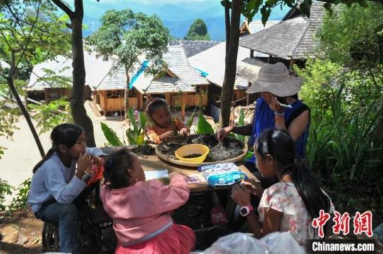 云南瀾滄景邁山,孩子與大人一起制茶。任東 攝