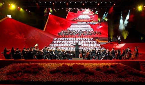 《紅旗頌》是由中國(guó)大陸作曲家呂其明創(chuàng)作的交響詩(shī),該作品于1965年創(chuàng)作并首演成功?!都t旗頌》以紅旗為主題,描繪了 1949年10月1日中華人民共和國(guó)成立時(shí)第一面五星紅旗升起的情景。同樣,它以宏偉莊嚴(yán)的歌唱性的旋律,表現(xiàn)了中國(guó)人民在紅旗的指引下,英勇頑強(qiáng),奮發(fā)向上的革命氣概,熱烈謳歌了偉大祖國(guó)蒸蒸日上的繁榮景象。該樂(lè)曲融入了《東方紅》和《義勇軍進(jìn)行曲》的旋律。