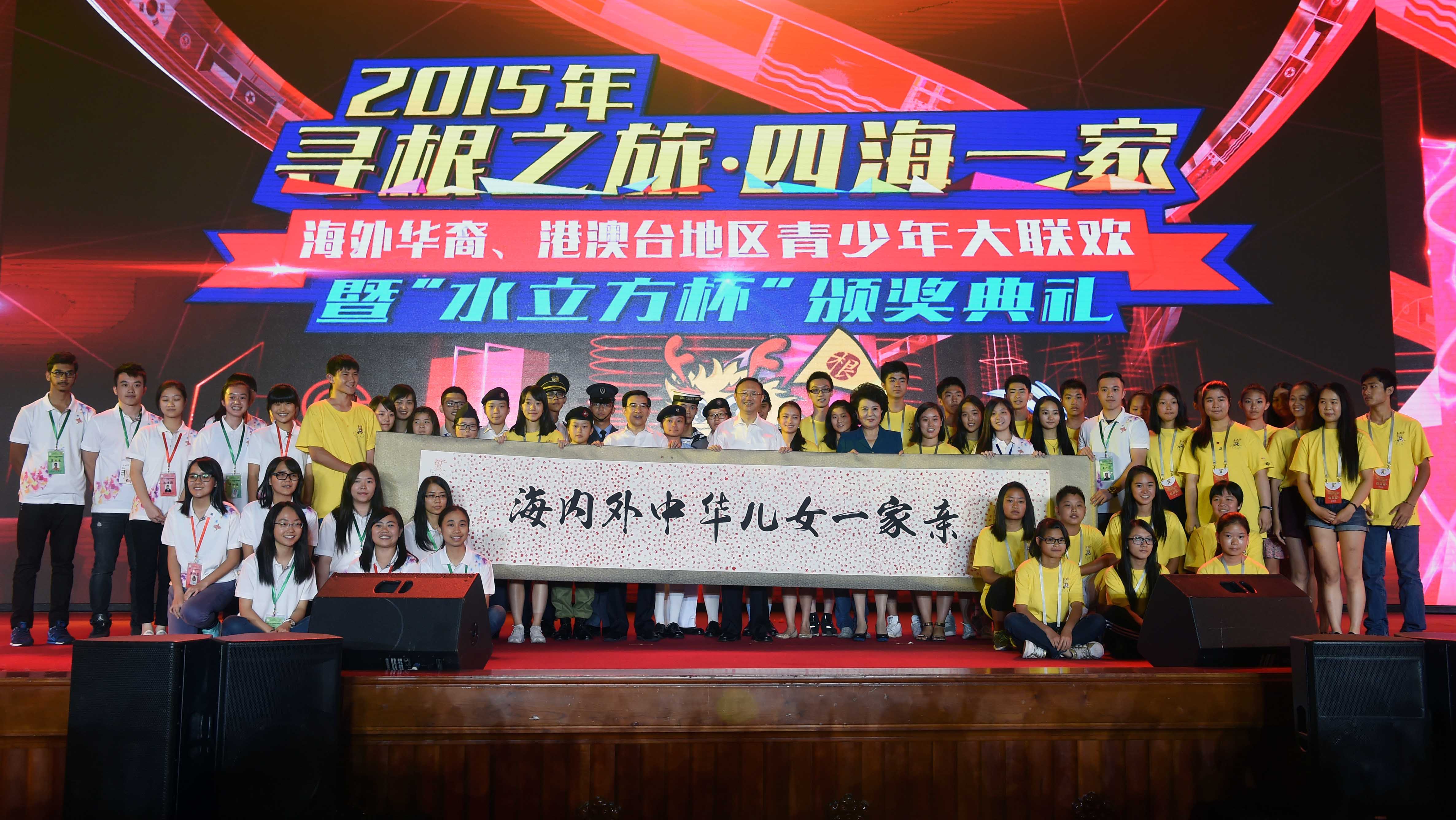 當(dāng)日,2015年“尋根之旅·四海一家”海外華裔暨港澳臺(tái)地區(qū)青少年大聯(lián)歡暨“水立方杯”海外華裔青少年中文歌曲大賽頒獎(jiǎng)典禮在人民大會(huì)堂舉行……[詳細(xì)]