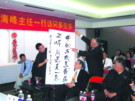 國務(wù)院僑辦主任李海峰9日率領(lǐng)僑辦經(jīng)濟科技司司長譚天星、國內(nèi)司司長程鐵生、秘書行政司司長熊昌良、文化宣傳司司長劉輝等人,出席與多倫多僑界代表的座談會,在聽取僑情僑意的同時,亦分別給予了回饋介紹。