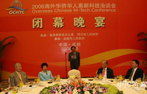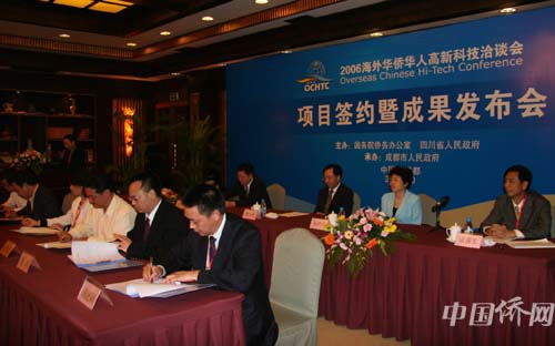 由國務(wù)院僑務(wù)辦公室和四川省政府主辦,成都市政府承辦的2006海外華僑華人高新科技洽談會(huì)10月18、19日在成都舉行,會(huì)議期間,舉辦了“天府論壇”、“跨國公司暨華商企業(yè)懇談會(huì)”、“海外知名專家專場(chǎng)報(bào)告會(huì)”、“投資創(chuàng)業(yè)暨人才招聘說明會(huì)”、“項(xiàng)目洽談、簽約”等一系列活動(dòng)。來自世界23個(gè)國家和地區(qū)的海外華僑華人專業(yè)人士和華商代表300余人參會(huì)。
