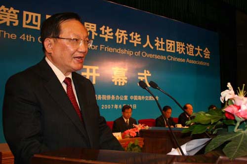 中國僑網(wǎng)消息(記者 陸春艷):由中國國務(wù)院僑務(wù)辦公室、中國海外交流協(xié)會(huì)主辦的“第四屆世界華僑華人社團(tuán)聯(lián)誼大會(huì)”6月20日上午在人民大會(huì)堂隆重開幕。中國國務(wù)委員唐家璇出席開幕式并致辭。