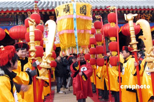 早八點,有著六百八十年歷史的天津天后宮,鼓樂齊鳴,鞭炮聲聲,信鴿翱翔,春祭儀式在一派隆重莊嚴(yán)的氣氛中開始。禮程包括送丙戌太歲白敏大將軍、行上香禮、行燃燈禮、行送神禮、行問訊禮、行讀祝禮、行進(jìn)獻(xiàn)禮、行飲福酒受胙禮、行送神禮、迎丁亥太歲封濟(jì)大將軍等。
