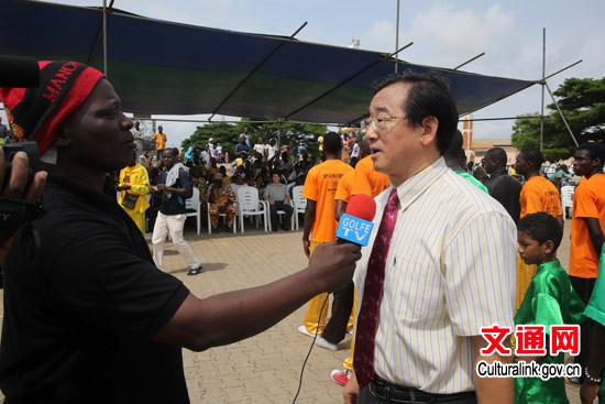 中國(guó)僑網(wǎng)7月14日電 據(jù)文化部網(wǎng)站消息,近日,在貝寧經(jīng)濟(jì)首都科托努市的列寧廣場(chǎng)上,8家中國(guó)武術(shù)俱樂(lè)部聚集在此,參加貝寧KIAI武術(shù)俱樂(lè)部和貝寧中國(guó)文化中心聯(lián)合舉辦的“科托努地區(qū)中國(guó)武術(shù)俱樂(lè)部大賽”。貝寧中國(guó)文化中心主任白光明、貝寧功夫武術(shù)聯(lián)合會(huì)副主席馬尤斯、當(dāng)博地區(qū)酋長(zhǎng)及社會(huì)各界武術(shù)愛(ài)好者近千人出席活動(dòng)。
