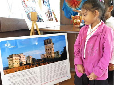 前來參觀的師生絡(luò)繹不絕。年齡不一、膚色各異的小學(xué)生圍在中國使館年輕外交官身旁,好奇而興奮地欣賞著展覽中傳統(tǒng)與現(xiàn)代緊密交織、自然與人文和諧共榮的魅力中國,認(rèn)真而著迷地聽著一個又一個與之相關(guān)的故事與傳說。