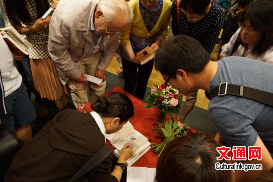 朗誦結(jié)束后,王安憶又與觀眾積極互動(dòng),就文學(xué)創(chuàng)作等問(wèn)題進(jìn)行了熱烈的交流與探討。不少觀眾紛紛請(qǐng)王安憶簽名并與之合影留念。(閆健)