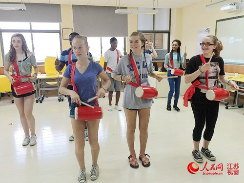 打腰鼓舞太極 美國學(xué)生在江蘇感受中國文化(圖)