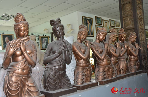 在杜永衛(wèi)的工作室里,記者看到,敦煌彩塑青年培訓班的橫幅,據(jù)敦煌宣傳部的人透露,杜永衛(wèi)除了制作敦煌彩塑外,還公益教授很多敦煌市青年人學習彩塑技藝,目前已初具規(guī)模。隨時代變遷,雖很多年輕人已不愿數(shù)年如一日投身枯燥的捏、塑、貼、壓、削、刻等傳統(tǒng)技法中,但杜永衛(wèi)仍在奔走相告,不放棄任何展覽和宣傳的機會,希望可以借此讓更多人真正了解敦煌的彩塑技藝,感受彩塑的獨特魅力,讓他可以找到下一代的傳承人。(李巖)