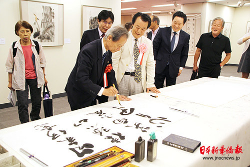 日本參議院議員、日中友好會(huì)館會(huì)長江田五月,中國大使館文化部參贊陳諍,日本眾議院議員江崎鐵磨,中國陜西省美術(shù)家協(xié)會(huì)副干事長、著名畫家巨石等近百名中日政界、文化界人士出席了開幕式。