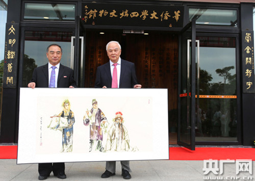 華僑大學校長賈益民、副校長曾路、華僑大學校董許丕新,日本校友會會長李曼,澳門校友會永遠榮譽會長郭志忠、會長林輝蓮等出席當天開幕式。開幕式上,李文培向學校捐贈他的畫作《岳母刺字》,賈益民向其頒發(fā)捐贈證書。曾路副校長代表全校師生感謝李文培先生及其家族的善舉,希望廣大師生以李文培先生及其家族為榜樣,以傳播中華文化為己任,為服務華僑華人、傳播中華文化貢獻力量。(黃光輝)