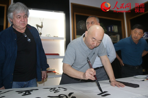 烏茲別克斯坦藝術家訪三亞 “舞文弄墨”秀書法