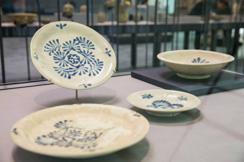 值得一提的是,此次展出的藏品包括一件中亞伎樂(lè)紋八棱金杯,是迄今發(fā)現(xiàn)的最大的唐代金杯。展出的三個(gè)兼具中東和中國(guó)特色的完整青花瓷盤(pán),表明當(dāng)時(shí)中國(guó)制造的瓷器已開(kāi)始吸收中東市場(chǎng)的審美元素。