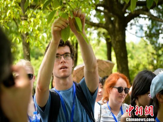 中新網(wǎng)上海7月6日電 (許婧 胡思江)上海交通大學藥學院的英文版《中醫(yī)藥與中華傳統(tǒng)文化》慕課(MOOC)課程的線下部分6日在上海交大的藥用植物園展開,來自11個國家的65名留學生跟隨講解老師與中醫(yī)藥用植物進行了親密接觸。
