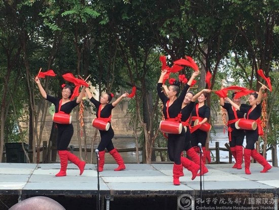 孔子課堂的學(xué)生們表演了中文合唱《我們的祖國是花園》、舞蹈《油紙傘》,精彩的表演和流利的漢語贏得觀眾的熱烈掌聲。當(dāng)?shù)仡H有盛名的華人腰鼓隊(duì)和舞蹈隊(duì)也前來助陣,獻(xiàn)上了中國歌舞。當(dāng)?shù)貙W(xué)生和家長(zhǎng)的舞龍和太極拳表演,將現(xiàn)場(chǎng)氣氛推向高潮。