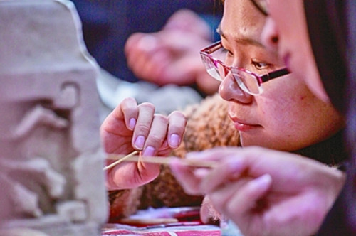 11月15日,重慶市大足石刻研究院文物保護工程中心,川渝石窟及石刻文物勘察技術培訓班學員正在實踐砂巖文物修復。據(jù)了解,中國南方石窟及石刻有90%集中在川渝地區(qū),多達8032處,由于年代久遠,這些砂巖材質的文物多數(shù)都出現(xiàn)各類病害,搶救性保護任務重。為此,國家文物局、中國文化遺產研究院、重慶市文物局在大足舉辦了本次培訓班,為“十三五”期間川渝地區(qū)石窟及石刻保護專項提供技術支持和人員儲備。(羅國家 攝)