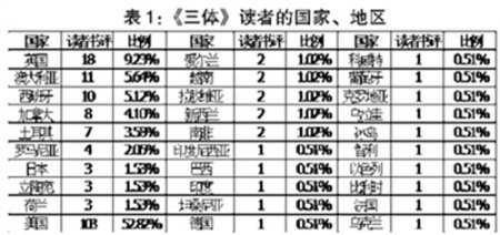 從表1看,最值得關注的是這些來自30多個國家的讀者的書評,包含了大量的跨文化傳播過程中不同文化碰撞的火花。本文按照作品風格、故事情節(jié)與翻譯兩個角度,分析讀者對于《三體》的認知和態(tài)度
