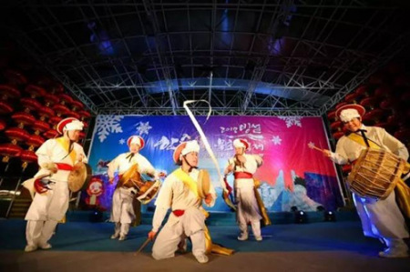 夜幕降臨,美輪美奐的冰燈盛景如同閃爍天空的繁星,將夜色中的龍慶峽璀璨照亮。隨著韓國忠南國樂管弦樂團和“Tteunsoe”藝術(shù)團奏響韓國傳統(tǒng)打擊樂-“四物游戲”的歡快節(jié)奏,開幕式正式開始。權(quán)泰慶教授載歌載舞,為現(xiàn)場觀眾們帶來了韓國傳統(tǒng)國樂表演,傳遞濃濃的友好情誼。