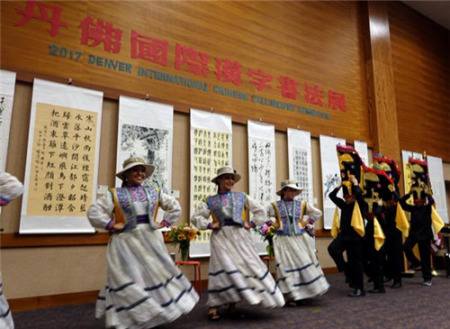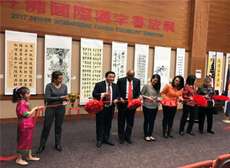 “國(guó)際漢字書(shū)法展”走進(jìn)美國(guó)丹佛 議員秀書(shū)法(圖)