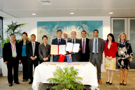 中國(guó)駐奧克蘭總領(lǐng)事許爾文、副總領(lǐng)事宋陳懋、文化領(lǐng)事張和清,新西蘭國(guó)會(huì)議員霍建強(qiáng),奧克蘭市外辦主任科瑞·迪金森等出席簽字儀式。