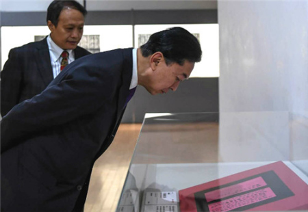 鳩山由紀(jì)夫先生作為“東亞共同研究所”理事長(zhǎng),一直關(guān)心著東亞地區(qū)的文化交流和融合。他在參觀“漢字三千年”展覽的時(shí)候熱情地表示,這也是他一直希望促成的事情,尤其是看到井真成墓碑的時(shí)候感慨頗深。