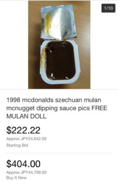 這款辣醬究竟是什么鬼?味道難道勝過“中國女神”老干媽?記者發(fā)現(xiàn),這款辣醬是1998年一快餐公司為慶祝迪士尼電影《花木蘭》上映造勢推出的,早已停止售賣。在網(wǎng)友熱烈呼喚下,該公司相關(guān)負責(zé)人表示會考慮重新推出。