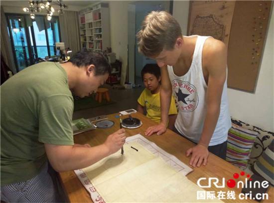 德國(guó)學(xué)生在家庭互動(dòng)日觀摩書法