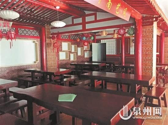 而展館內(nèi)的舞臺(tái)和開放式教室,則別具匠心地融入了閩南建筑元素,王校長(zhǎng)說(shuō):“以后將作為學(xué)校的閩南文化傳習(xí)所。”讓學(xué)生們?cè)诨艨澙@的紅磚古厝中,學(xué)習(xí)妝糕人、南音、花燈等閩南傳統(tǒng)文化課程,并展示自己的學(xué)習(xí)成果,感受家鄉(xiāng)古韻風(fēng)姿。該校還搜集了各類閩南傳統(tǒng)文化相關(guān)書籍、泉州地方志等陳列其中,多種途徑為學(xué)生們打開學(xué)習(xí)并傳承海絲文化的窗口,同時(shí)作為全校師生課外閱讀和開展閱讀活動(dòng)的又一場(chǎng)所。