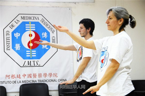 在傳播中華中醫(yī)的同時(shí),我們又創(chuàng)辦了中文學(xué)校,教授阿根廷人學(xué)習(xí)普通話和漢語(yǔ)。通過(guò)中國(guó)文化的學(xué)習(xí),讓學(xué)生們了解中國(guó)文化,其中包括書(shū)法、包括茶藝。尤其近年來(lái),我們積極推廣茶文化,讓阿根廷人懂得喝茶不要加糖;讓他們認(rèn)識(shí)中國(guó)的十大名茶等等。我還了解到阿根廷人非常喜歡中國(guó)武術(shù),由于我小的時(shí)候?qū)W習(xí)過(guò)南少林短拳,我又回到國(guó)內(nèi)學(xué)習(xí)了健身氣功和醫(yī)療氣功,并帶了一些學(xué)習(xí)資料回到了阿根廷。又派學(xué)生到中國(guó)進(jìn)行學(xué)習(xí),回來(lái)后擔(dān)當(dāng)我的助教。現(xiàn)在我已經(jīng)有四位助教在幫助我教授健身氣功和醫(yī)療氣功。
