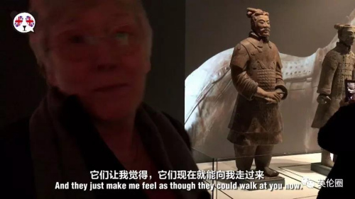 表情和語氣最夸張的這位英國阿姨,連連直呼兵馬俑們“就像活過來了一樣”,而且她多年前還親自去過中國參觀秦始皇陵和兵馬俑,現在再次看到它們,還是一樣的激動。