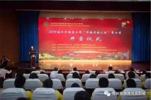 30日上午,2018海外華裔青少年“中國尋根之旅”夏令營常州營順利開營。此次夏令營由40名來自德國紐倫堡學校華裔師生組成。常州市人民政府僑務(wù)辦公室副主任湯建忠、國外處處長秦嫣、常州市教育局、常州旅游商貿(mào)高等職業(yè)技術(shù)學校(下稱常旅商)等相關(guān)領(lǐng)導參加了開營儀式。常旅商校長秦益霖致歡迎辭。