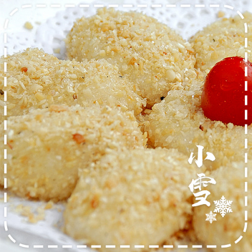 團(tuán)成一個(gè)個(gè)雪白的小球,