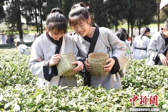 四川千名學(xué)子著漢服祭拜“茶祖”采摘春茶